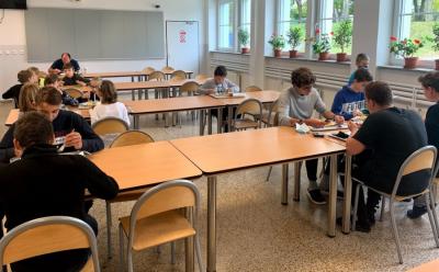 Úprava provozu Å¡kolnà jÃdelny- Vzhledem k hygienickým opatÅ™enÃm v nouzovém stavu se upravuje provoz Å¡kolnà jÃdelny. V jÃdelnÄ› musà být vzdálenost stolů pro strávnÃky 1,5 metru. Proto jsme museli židle od prostÅ™ednÃch stolů uklidit. Zároveň nesmà být v jÃdelnÄ› vÃc žáků, než kolik je v nà právÄ› volných mÃst. Podle tÄ›chto podmÃnek byl upraven také režim pÅ™Ãchodu žáků do jÃdelny, tÃm také rozvrh hodin a také Äas stravovánà žáků, kteřà nejsou ve Å¡kole a distanÄnÄ› studujà (je jich sice jen 10, ale i oni majà speciálnà režim stravovánÃ).