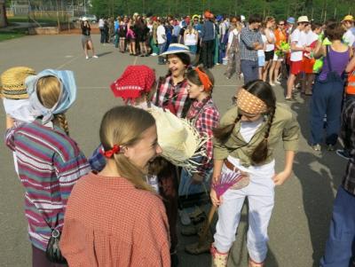 d) odchod tÅ™Ãd v maskách od Å¡koly na majálesové shromaždiÅ¡tÄ› k Fabrice – pod vedenÃm tÅ™ÃdnÃch uÄitelů