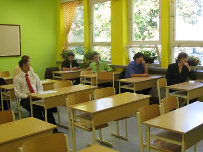ProsÃme vÅ¡echny úÄastnÃky zkouÅ¡ky, aby se dostavili do pÅ™ÃsluÅ¡ných uÄeben vÄas, alespoň 15 minut pÅ™ed zaÄátkem zkouÅ¡ky. Povolené pomůcky (napÅ™. slovnÃky, pravidla pravopisu, tabulky apod.) budou kontrolovat naÅ¡i uÄitelé pÅ™ed zaÄátkem pÅ™ÃsluÅ¡né zkouÅ¡ky. ZjistÄ›te si ve svých kmenových Å¡kolách, jaké pomůcky můžete mÃt, co napÅ™. slovnÃky nesmà obsahovat. Jde o stejné zásady, které platily pÅ™i jarnÃm termÃnu. Ve Å¡kole bude informaÄnà systém, kde se zkouÅ¡ky konajà - ve vÅ¡ech pÅ™Ãpadech jde o nÄ›kterou z uÄeben ve druhém poschodà zadnà budovy Å¡koly - projdete hlavnÃm vchodem, spojovacÃm krÄkem mezi budovami (kolem bufetu) a po schodech se dáte nahoru. VÅ¡echny uÄebny budou oznaÄeny a na dveÅ™Ãch budou seznamy tÄ›ch, kteřà budou právÄ› maturovat (psát pÃsemnou práci Äi test).