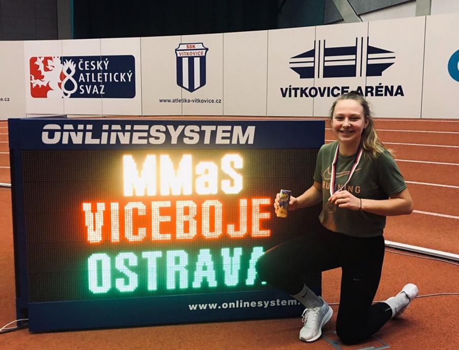E. ÄŒervená se 18. 1. stala mistrynà Moravy a Slezska v halových vÃcebojÃch v kategorii dorost (v novém oddÃlovém rekordu).