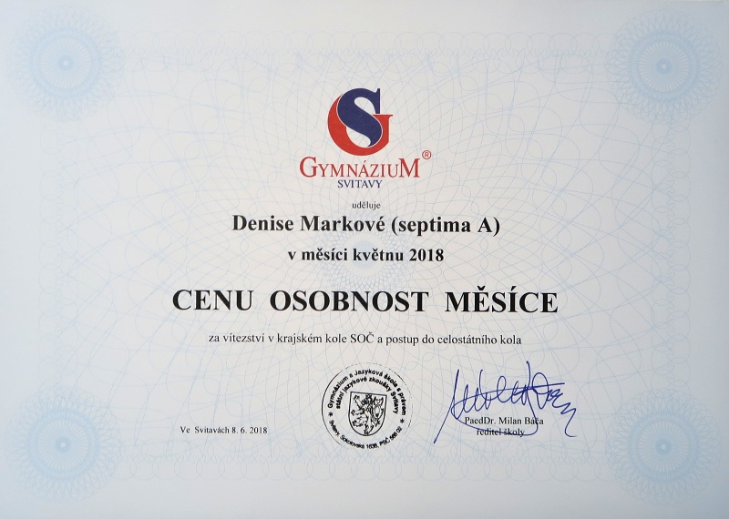 D. Marková osobností mÄ›síce kvÄ›tna 2018 - fotogalerie - Gymnázium Svitavy