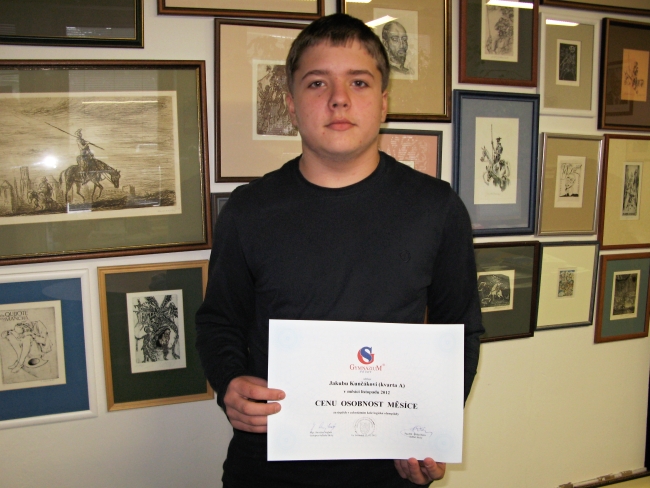 Jakub Kunčák osobností mÄ›síce listopadu 2012 - fotogalerie - Gymnázium Svitavy