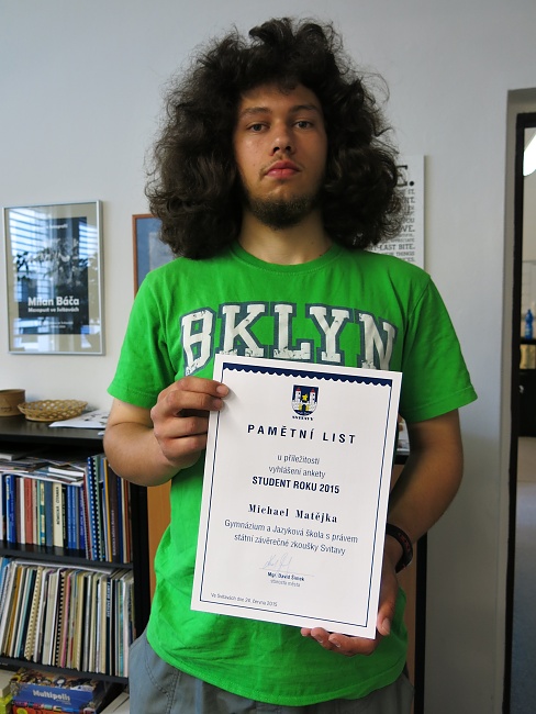 M. MatÄ›jka zÃskal ocenÄ›nà Student mÄ›sta Svitavy ve Å¡kolnÃm roce 2014-2015