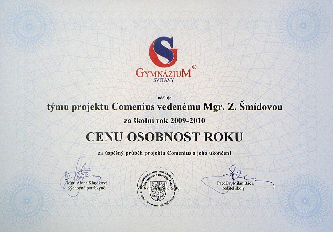 Osobností roku 2009-2010 tým projektu Comenius - fotogalerie - Gymnázium Svitavy