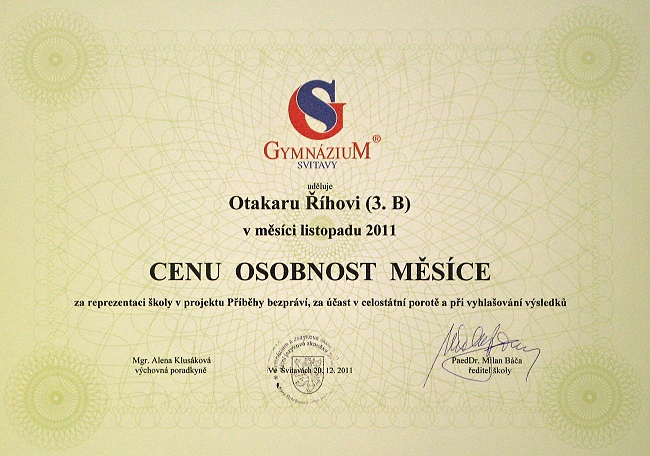 Otakar Říha osobností mÄ›síce listopad 2011 - fotogalerie - Gymnázium Svitavy