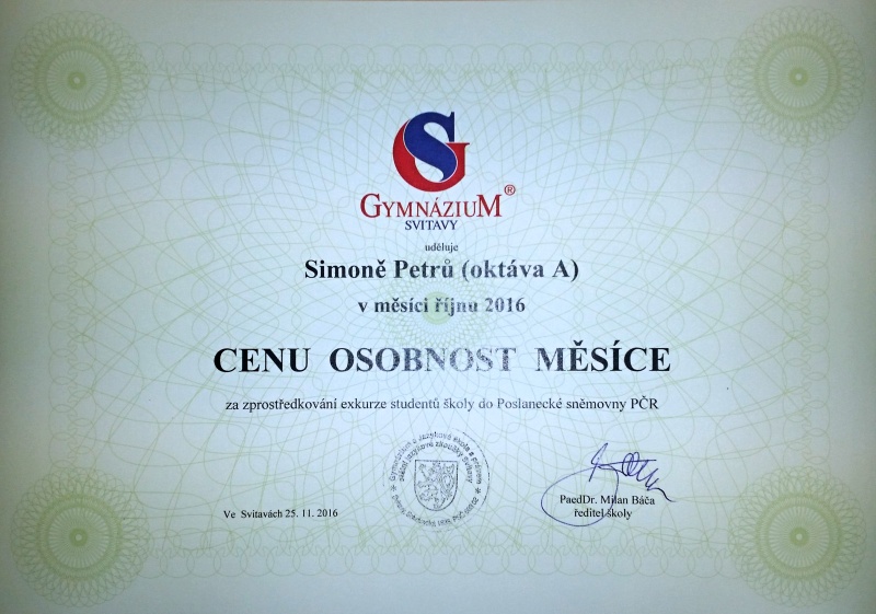 Simona Petrů osobností mÄ›síce - fotogalerie - Gymnázium Svitavy