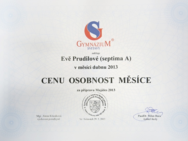 Å kolní osobností mÄ›síce E. Prudilová - duben 2013 - fotogalerie - Gymnázium Svitavy