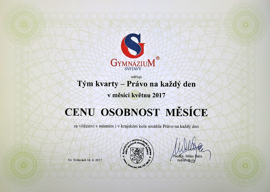 Tým kvarty získal cenu Osobnost mÄ›síce za kvÄ›ten - fotogalerie - Gymnázium Svitavy