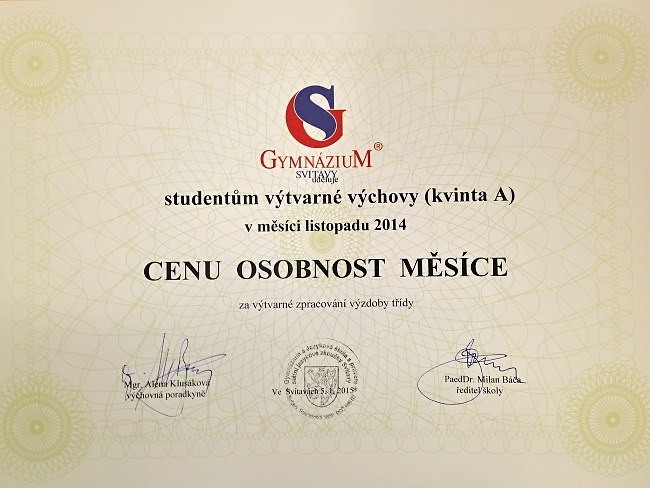 Výtvarníci z kvinty získali cenu Osobnost mÄ›síce - fotogalerie - Gymnázium Svitavy