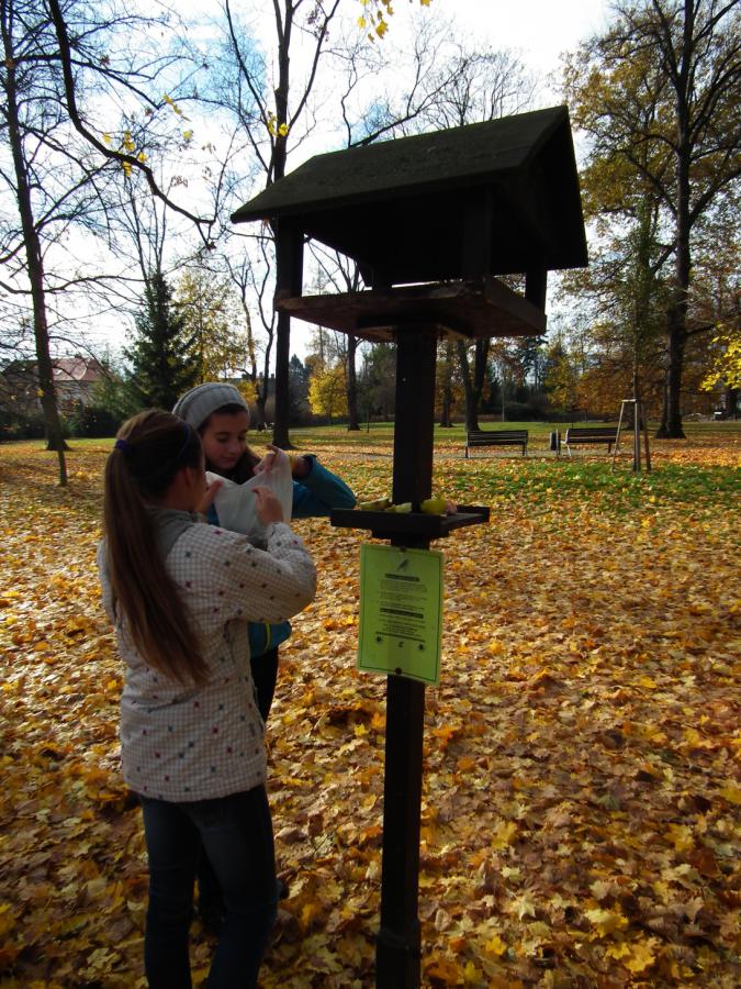 Prvnà aktivitou v sobotu 3. listopadu bylo naplnÄ›nà krmÃtka potravou pro ptáky v parku J. Palacha.