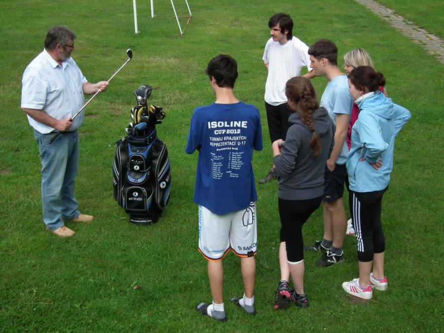 Sportovnà Äást pomohl vyplnit i pan Å™editel BáÄa krátkou lekcÃ, pÅ™i které si studenti zkusili odpálit golfový mÃÄek (nebylo to vůbec jednoduché).